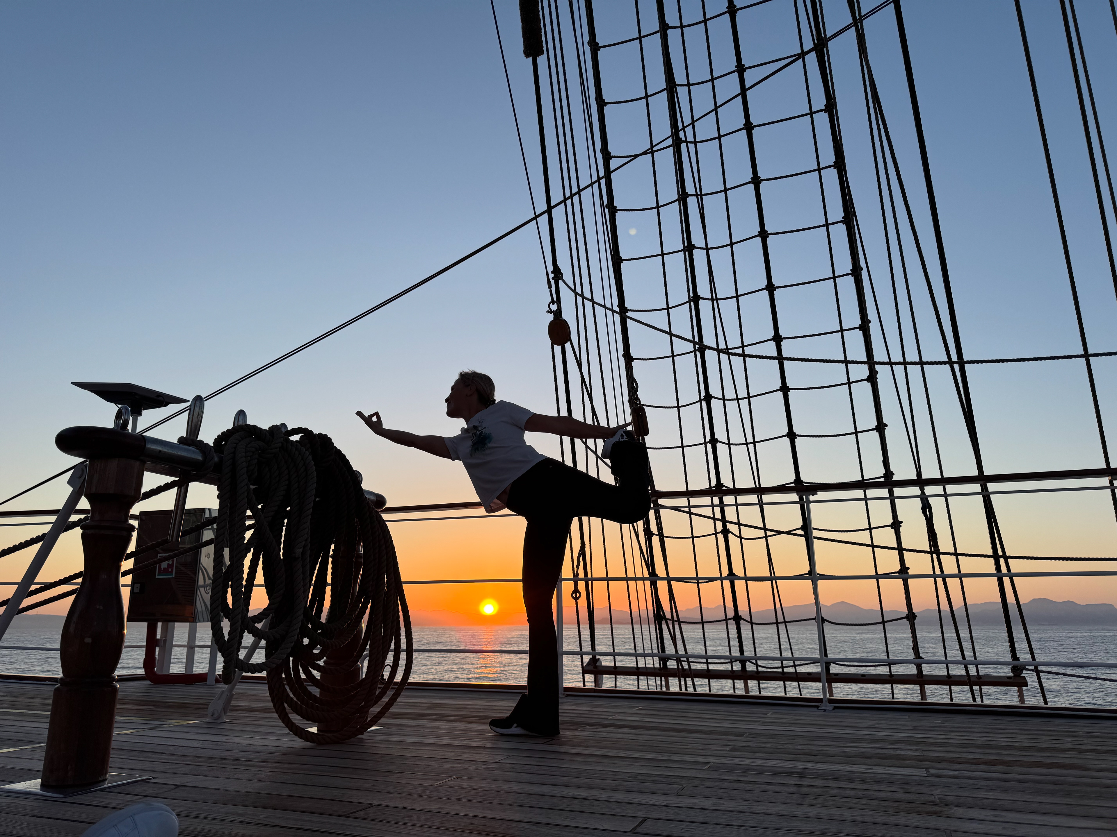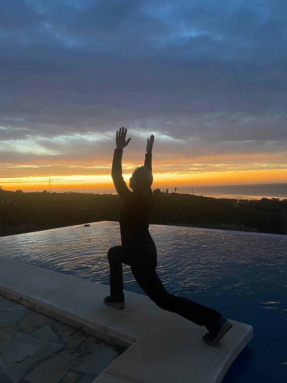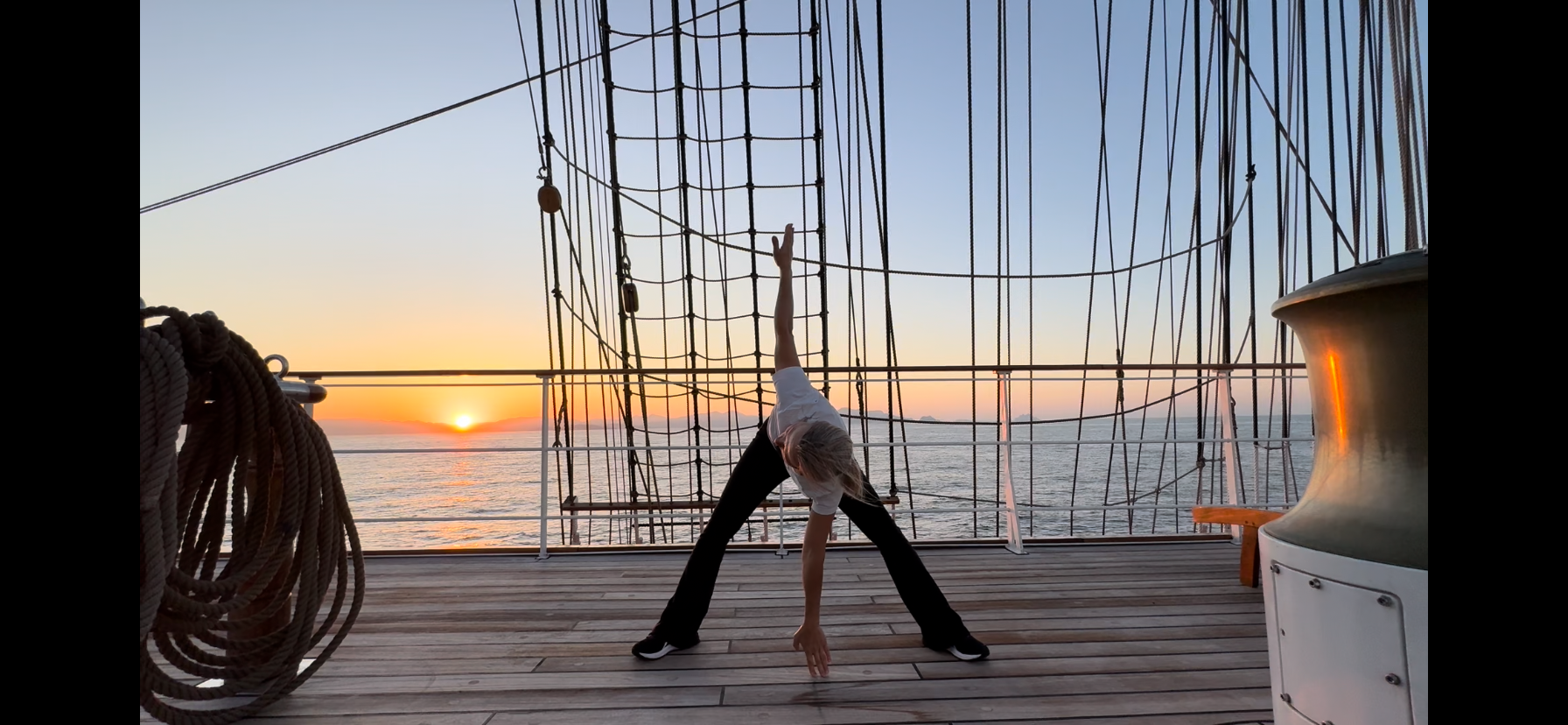 Al amanecer, añade una suave inclinación hacia atrás: siente un momento de calma en armonía con la naturaleza.