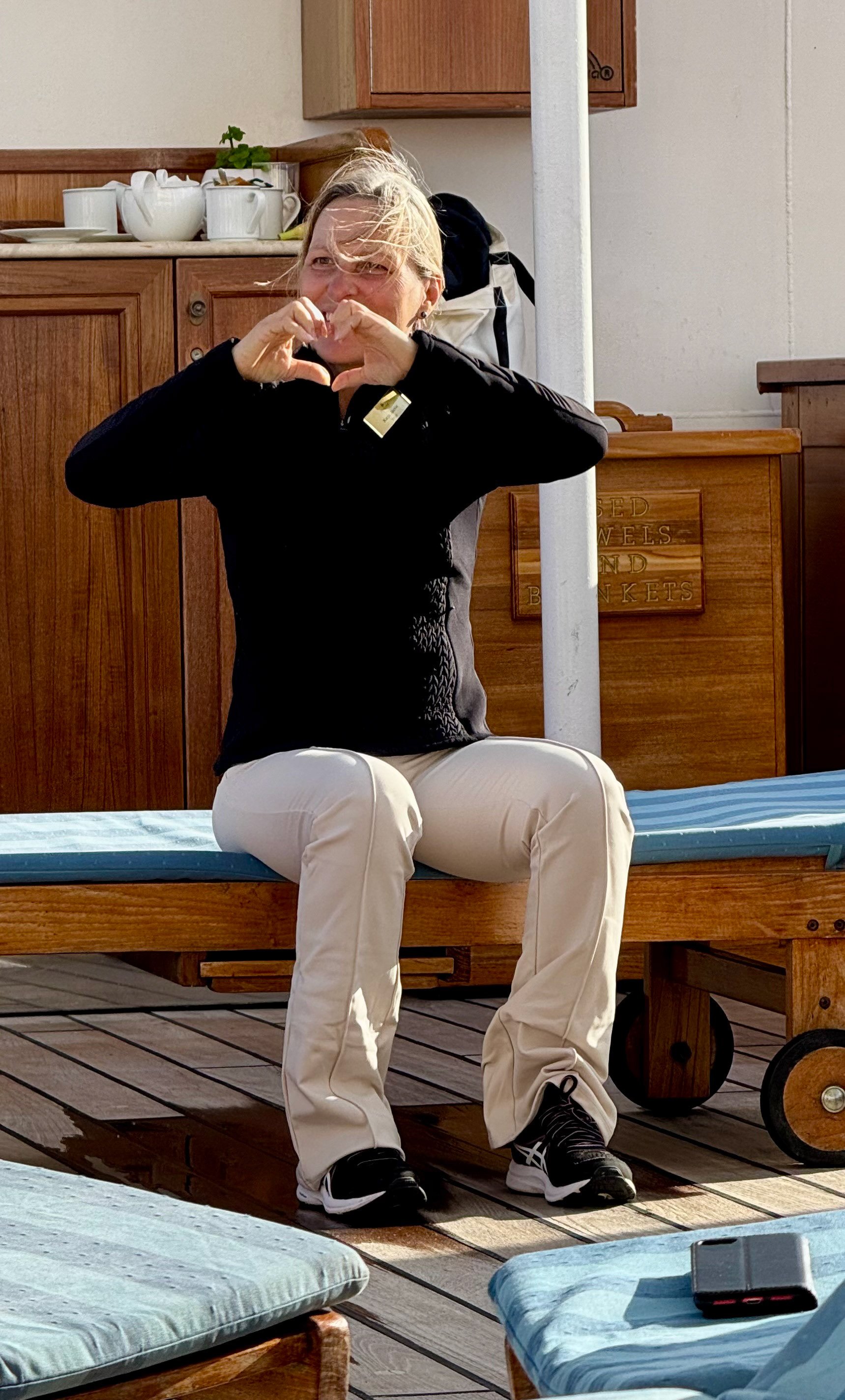 En expirant doucement par le nez, roule les dos de tes mains de façon à ce que les ongles de tes quatre doigts se touchent et que l’intérieur de tes pouces se rejoigne, formant un magnifique cœur.