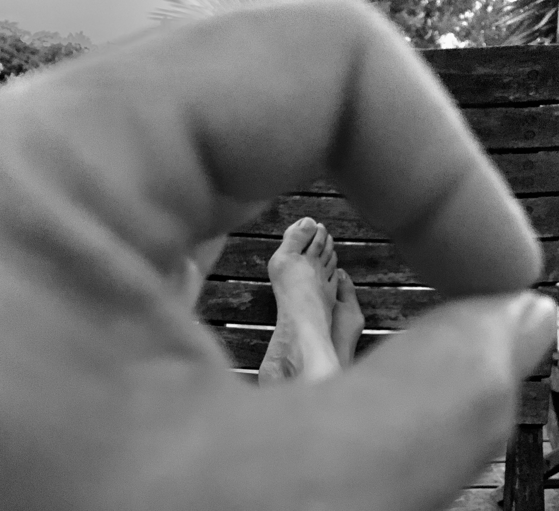 Tu peux aussi faire tourner tes pieds, les deux dans le même sens, vers l’intérieur ou l’extérieur, en forme de 8 ou simplement les agiter.